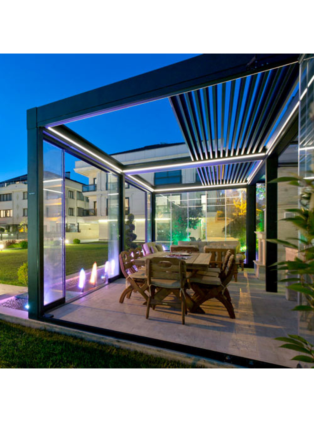 1-е преимущество - это особенный внешний вид ,который в некоторых случаях идеально вписывается в концепцию дома - где часто, например, квадратные формы , плоская кровля и холодные серо-белые хай-течный фасады. Это выглядит ну очень современно.2-е преимущество - данной системе не страшны любые ветра и если классическую маркиза пергола все-таки при сильных ветрах нужно складывать - то ламельной не страшен даже ураган.